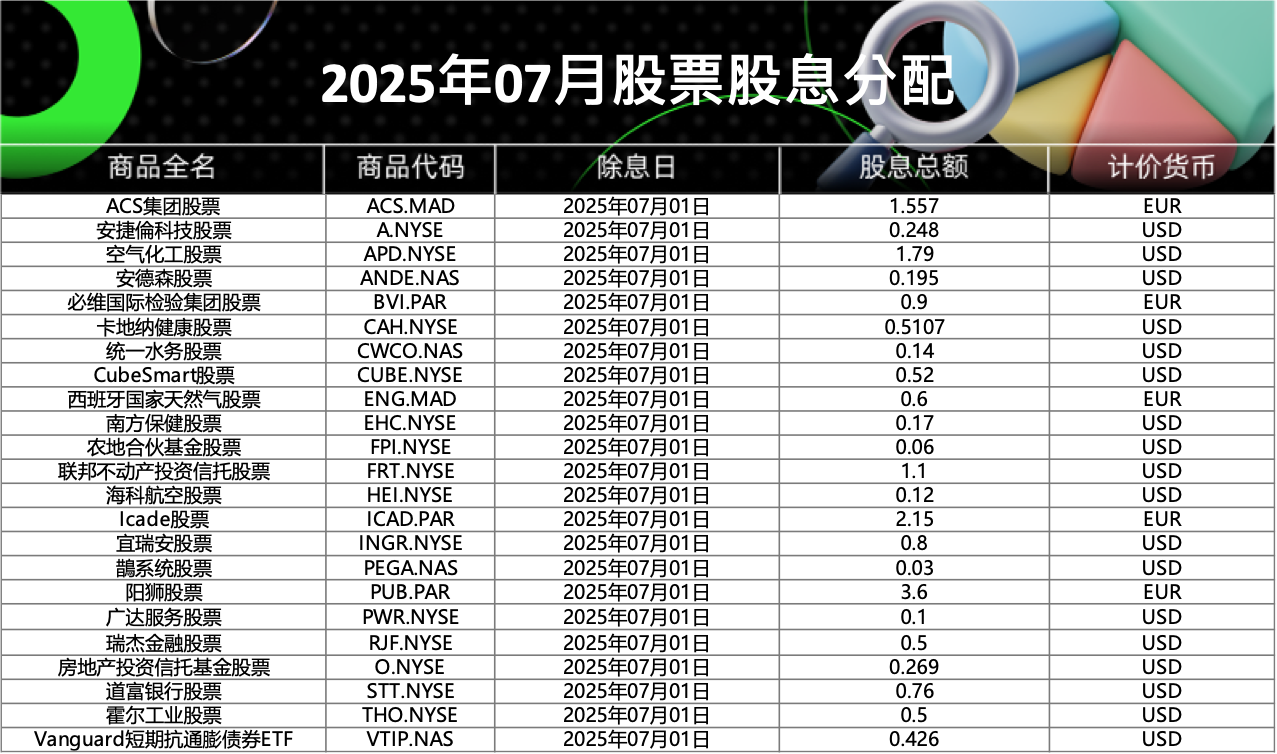 01 Jul 2025 2025年07月股票股息分配表 (2025-07-31) Chloe Lai No Comments 亲爱的客户您好, 请查阅我们更新的2025年07月股票股息分配表。 以下所有时间均为平台时间(GMT+3) IC Markets Global 中文团队 中文官网: https://ic-cn-site.com Email: support.cn@icmarkets-cs.com 微博:@IC小帮手