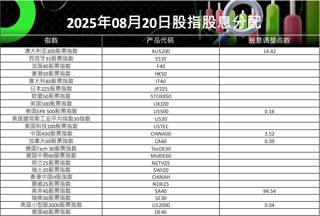 20 Aug 2025 2025年08月股指股息分配表 (2025-08-20) Chloe Lai No Comments 亲爱的客户您好, 请查阅我们更新的2025年08月20日股指股息分配表。 以下所有时间均为平台时间(GMT+3) IC Markets Global 中文团队 中文官网: https://ic-cn-site.com Email: support.cn@icmarkets-cs.com 微博:@IC小帮手