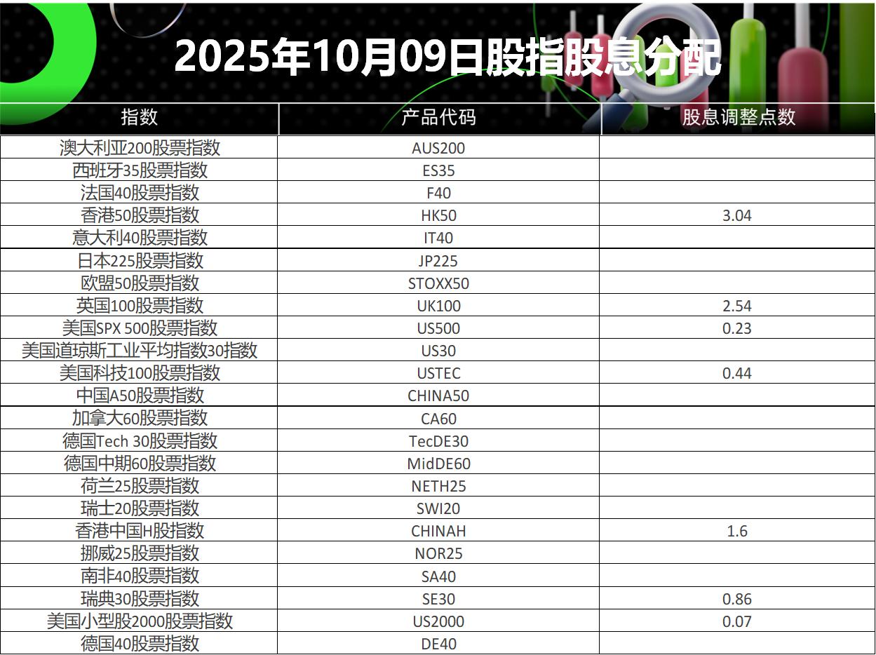 09 Oct 2025 2025年10月股指股息分配表 (2025-10-09) Rachel Yu No Comments 亲爱的客户您好, 请查阅我们更新的2025年10月09日股指股息分配表。 以下所有时间均为平台时间(GMT+3) IC Markets Global 中文团队 中文官网: https://ic-cn-site.com Email: support.cn@icmarkets-cs.com 微博:@IC小帮手