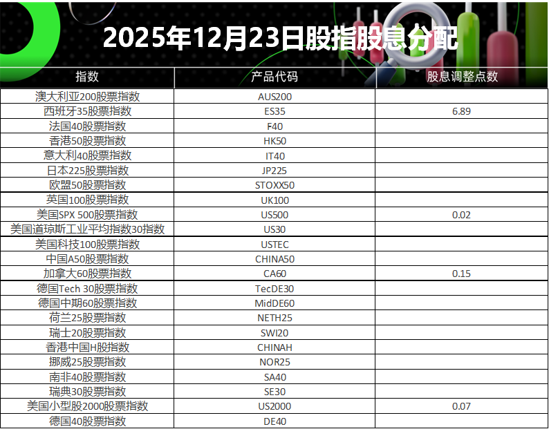 23 Dec 2025 2025年12月股指股息分配表 (2025-12-23) Rachel Yu No Comments 亲爱的客户您好, 请查阅我们更新的2025年12月23日股指股息分配表。 以下所有时间均为平台时间(GMT+2) IC Markets Global 中文团队 中文官网: https://ic-cn-site.com Email: support.cn@icmarkets-cs.com 微博:@IC小帮手