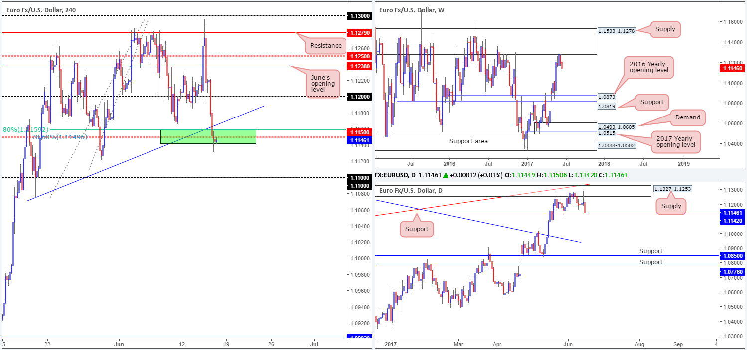 Our suggestions: Basically, the reason for requiring additional H4 confluence around the 1.1150 neighborhood is due to the weekly sellers showing strength from the underside of a major supply coming in at 1.1533-1.1278!