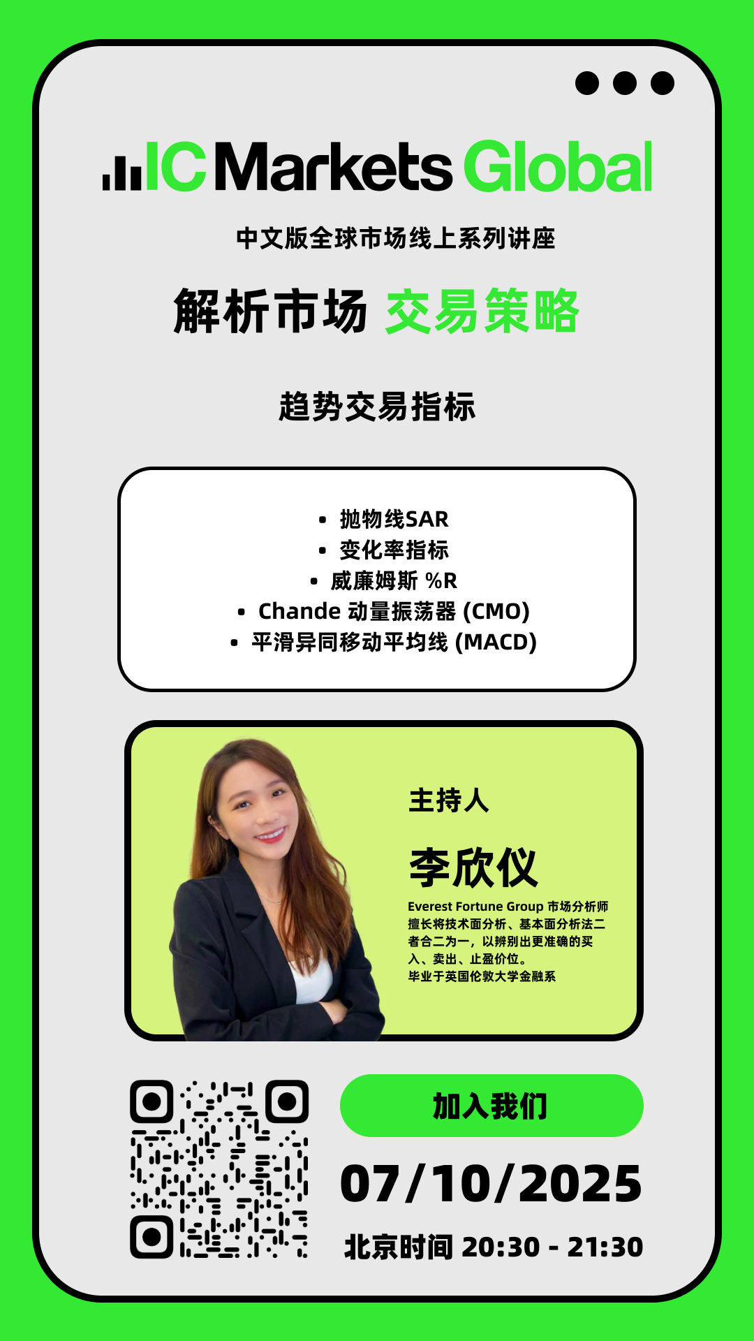 IC Markets Global 10月07日(周二) 线上讲座:趋势交易指标