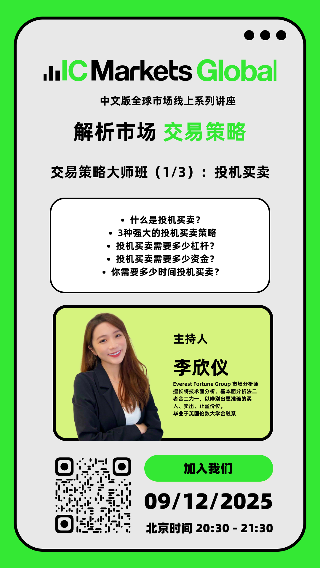 中文线上金融衍生品交易讲座话题:交易策略大师班(1/3):投机买卖