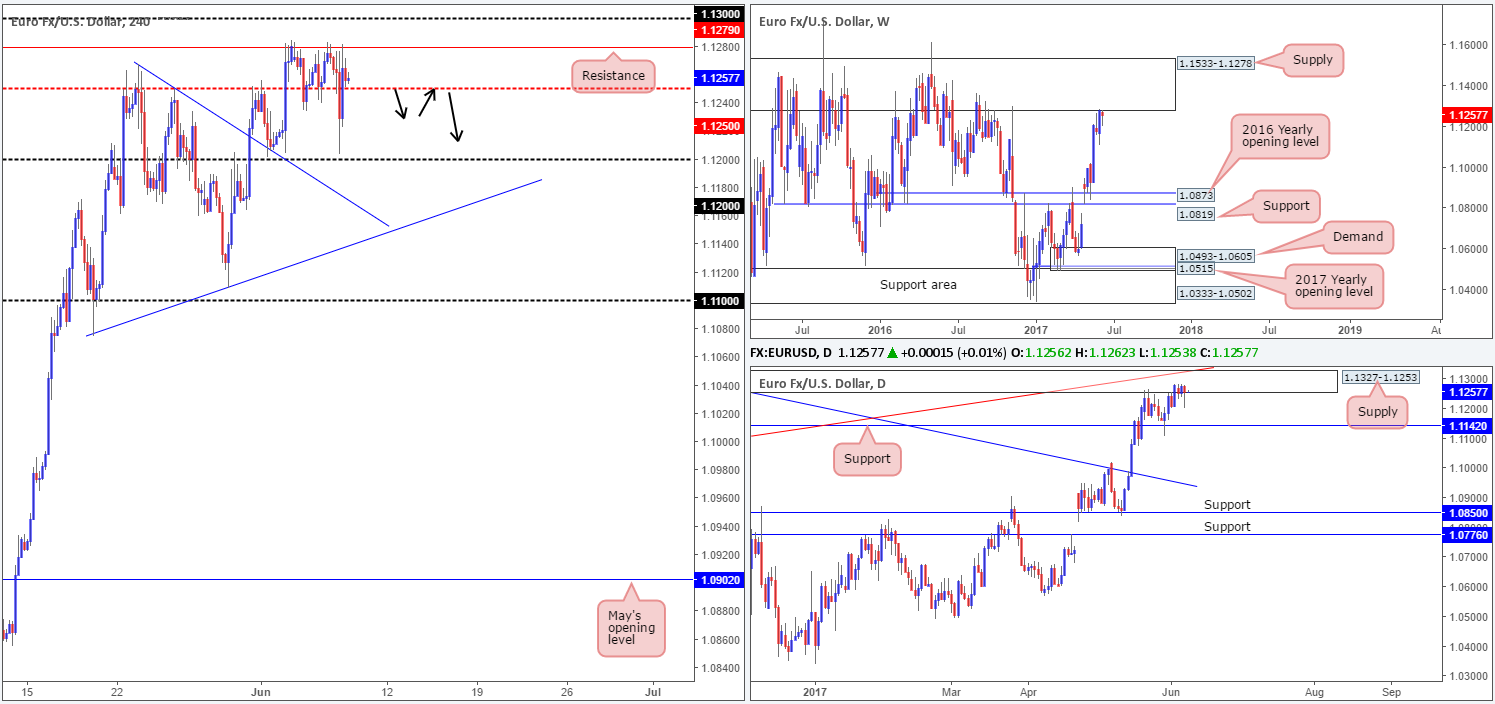 · Sells: Watch for H4 price to engulf 1.1250 and then look to trade any retest seen thereafter ([waiting for a reasonably sized H4 bear candle to form following the retest is advised] stop loss: ideally beyond the candle’s wick).